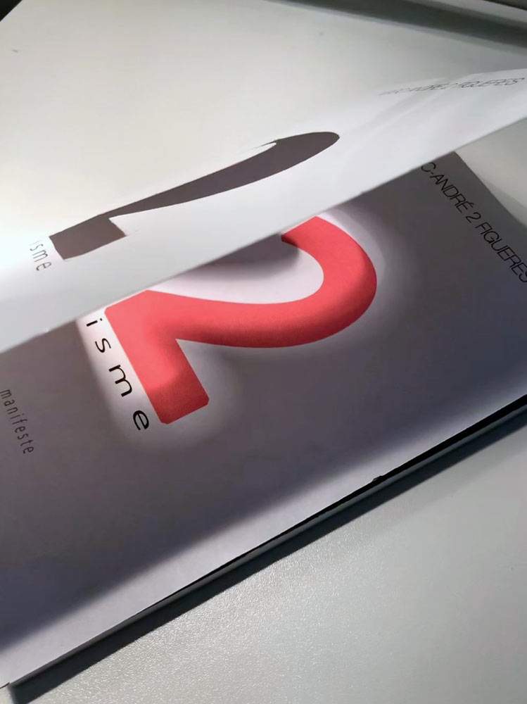 Le 2isme est une pensée, inventée par MA2F, qui place l’homme/femme au centre de l’univers. Seul 2 (homme/femme) peut acquérir une liberté intérieure qui lui offre la possibilité de graver son territoire d’empreint. Et c’est uniquement par cette double révolution intérieure que peut naître un véritable état de création qui s’ouvre vers l’extérieur, hors 2 soi, hors 2 ses limites, hors de son 2 cadre : se créer comme une oeuvre universelle.